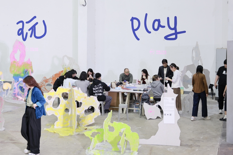 刘毅工作室带来“玩- PLAY”自然形态共创现场,邀请从幼儿园的孩子到高校学生在自己的“湖石”现场“玩”,向自然学习造型方法。现场作品的面貌会在这几天持续教学工作坊中慢慢变化。